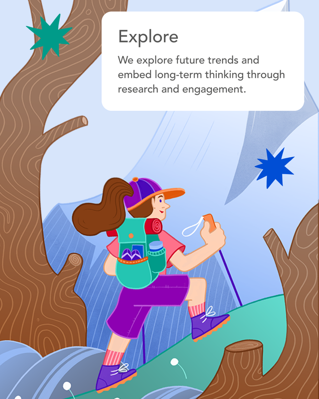 The 2025-28 strategy was launched with a suite of materials designed to make complex ideas engaging and accessible. Illustrations, bold colours and photography brought warmth and humanity, helping people connect with the vision and see their role within it.